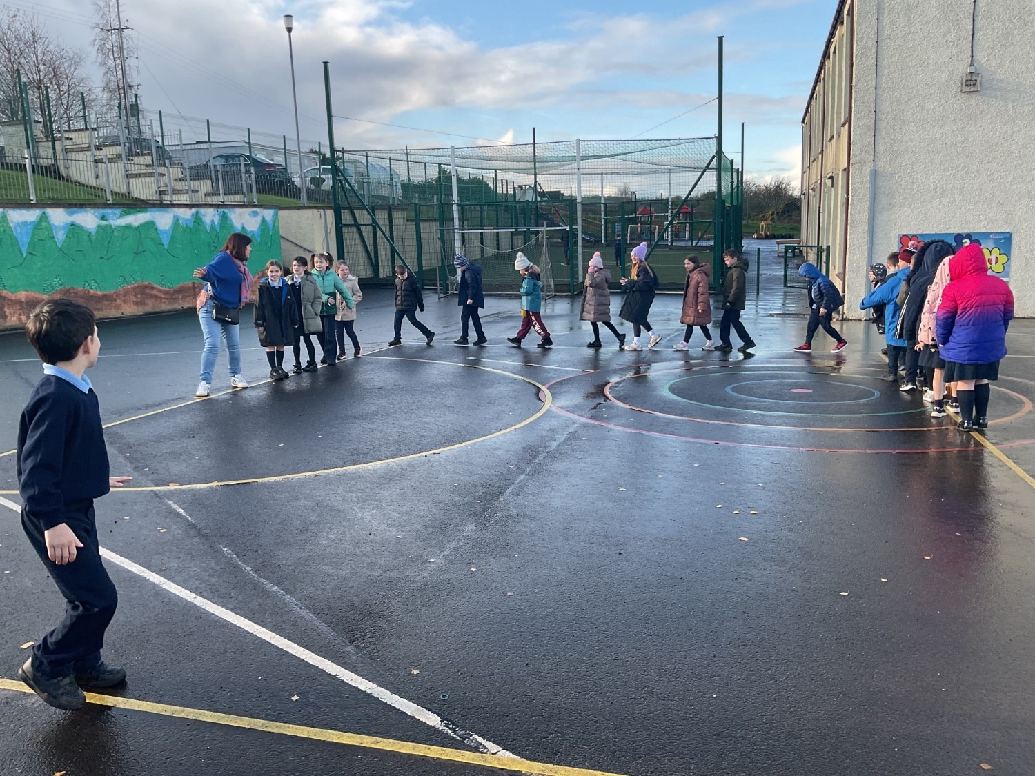 Primary 4 enjoyed their Spanish lesson outdoors today. They learned Spanish songs and the alphabet.